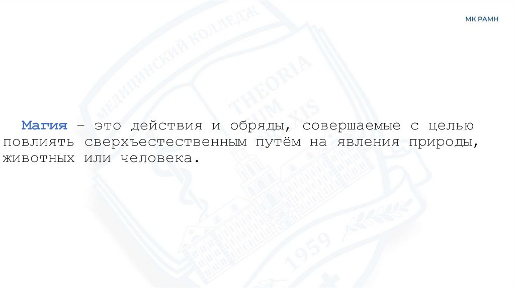 Магия – это действия и обряды, совершаемые с цельюповлиять сверхъестественным путём на явления природы,