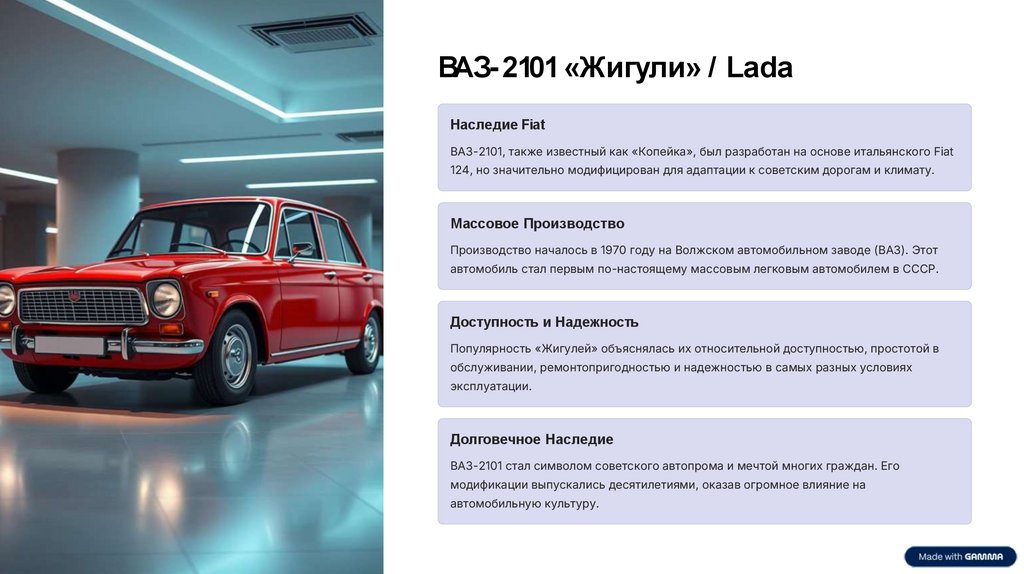 ВАЗ-2101, также известный как «Копейка», был разработан на основе итальянского Fiat