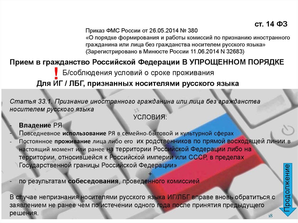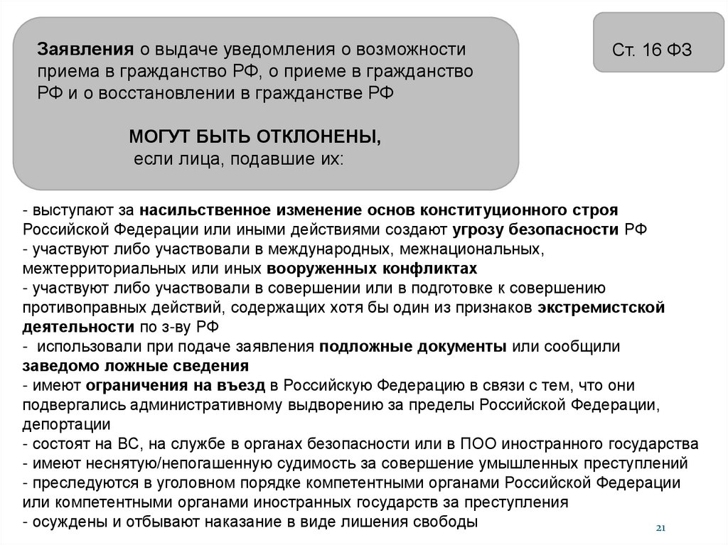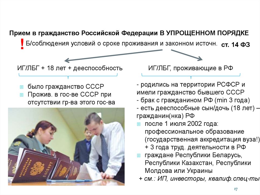 на прием в гражданство Российской Федерации в упрощенном порядке, идет речь на слайде 17?