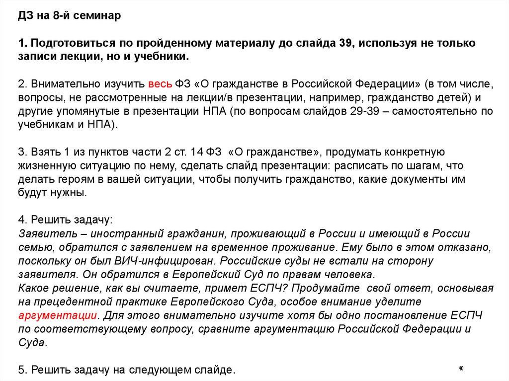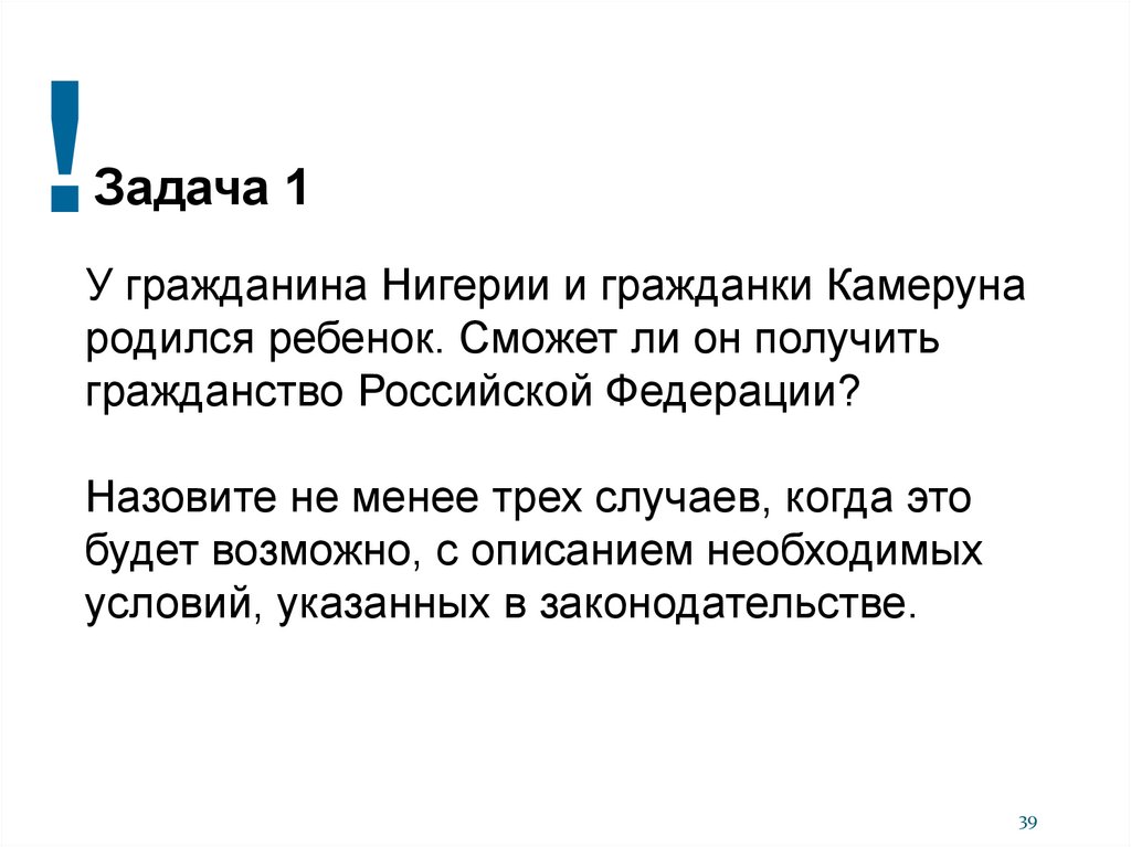 4. Изучить ФЗ «О гражданстве в Российской Федерации» (начнем решать задачи по нему)