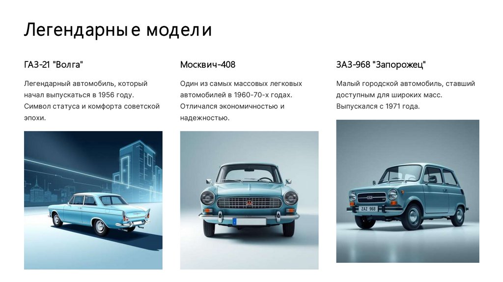 ЗаключениеАвтомобили в СССР — это не только транспортные средства, но и часть культурного и социального облика страны.