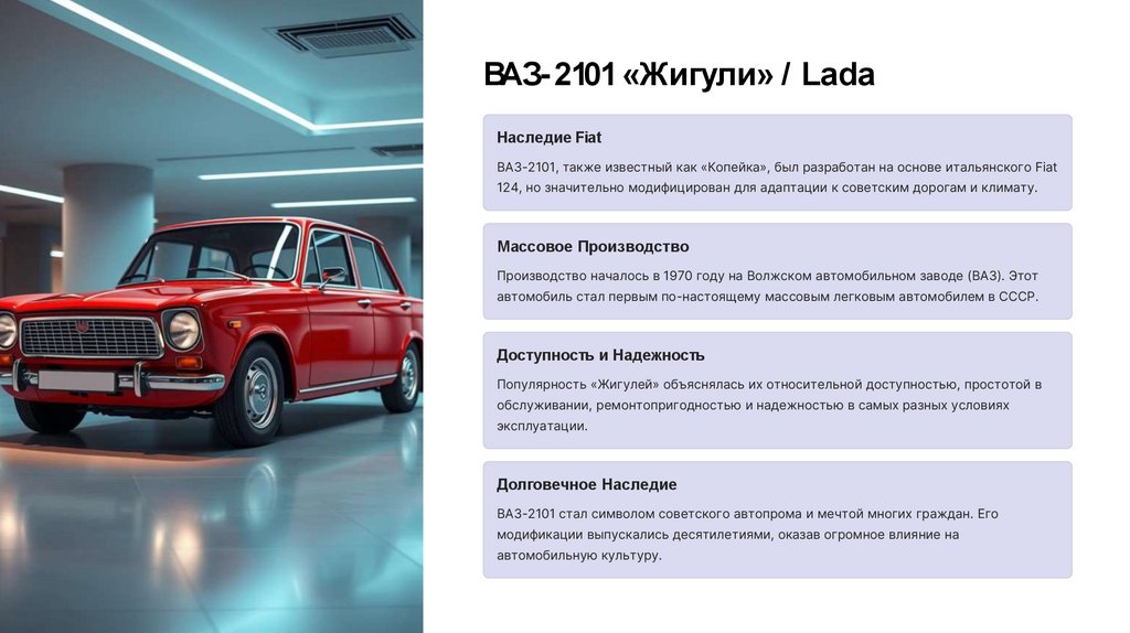 ВАЗ-2101, также известный как «Копейка», был разработан на основе итальянского Fiat