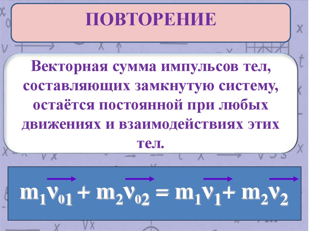 ПОВТОРЕНИЕВекторная сумма импульсов тел,