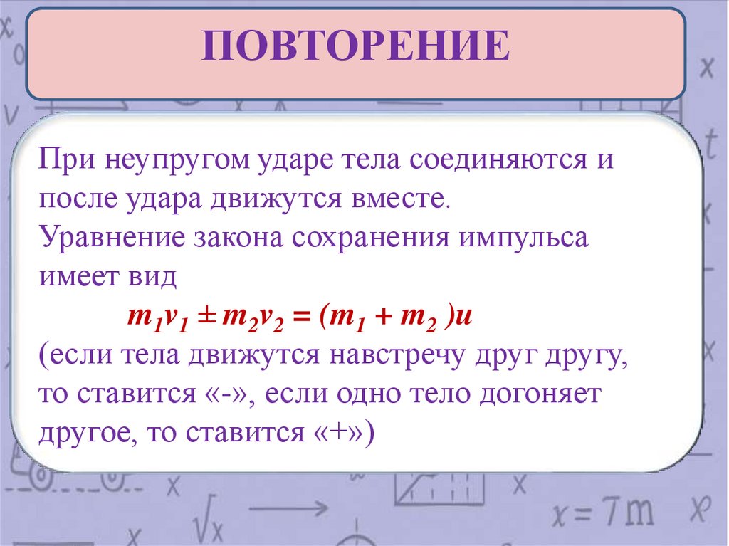 ПОВТОРЕНИЕПри неупругом ударе тела соединяются и