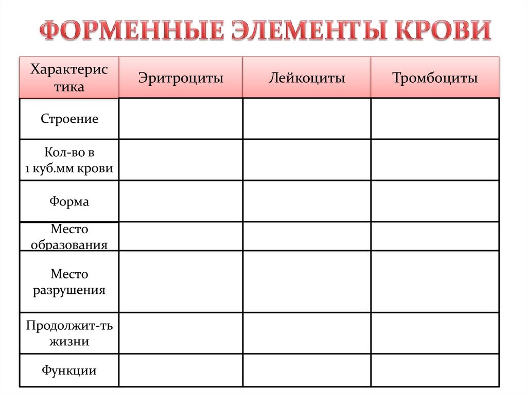 •В 1 куб.мм крови – 180-320 тыс.