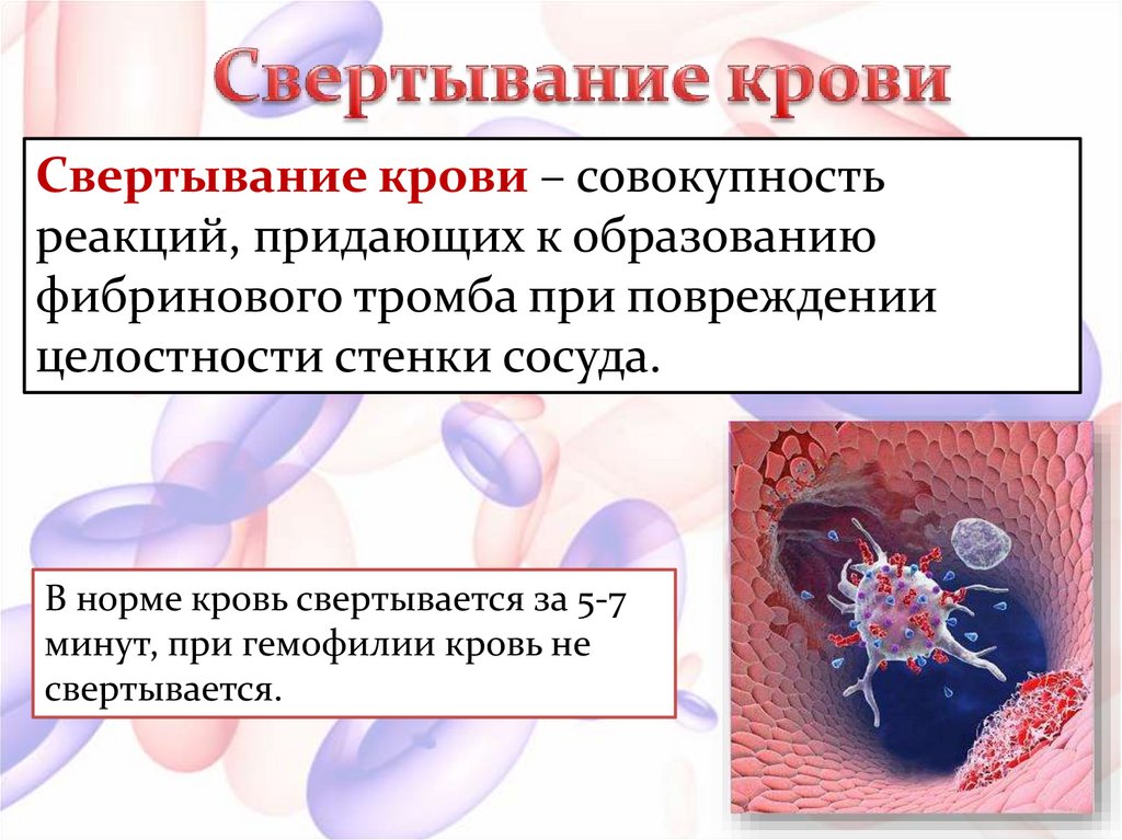 Свертывание крови – совокупностьреакций, придающих к образованию