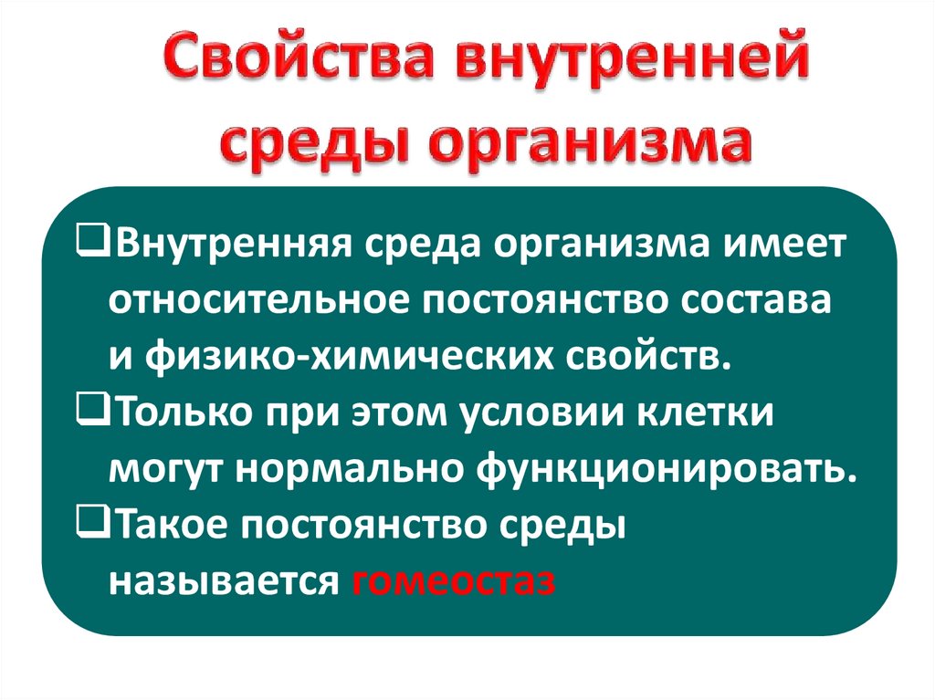 Внутренняя среда организма имеетотносительное постоянство состава