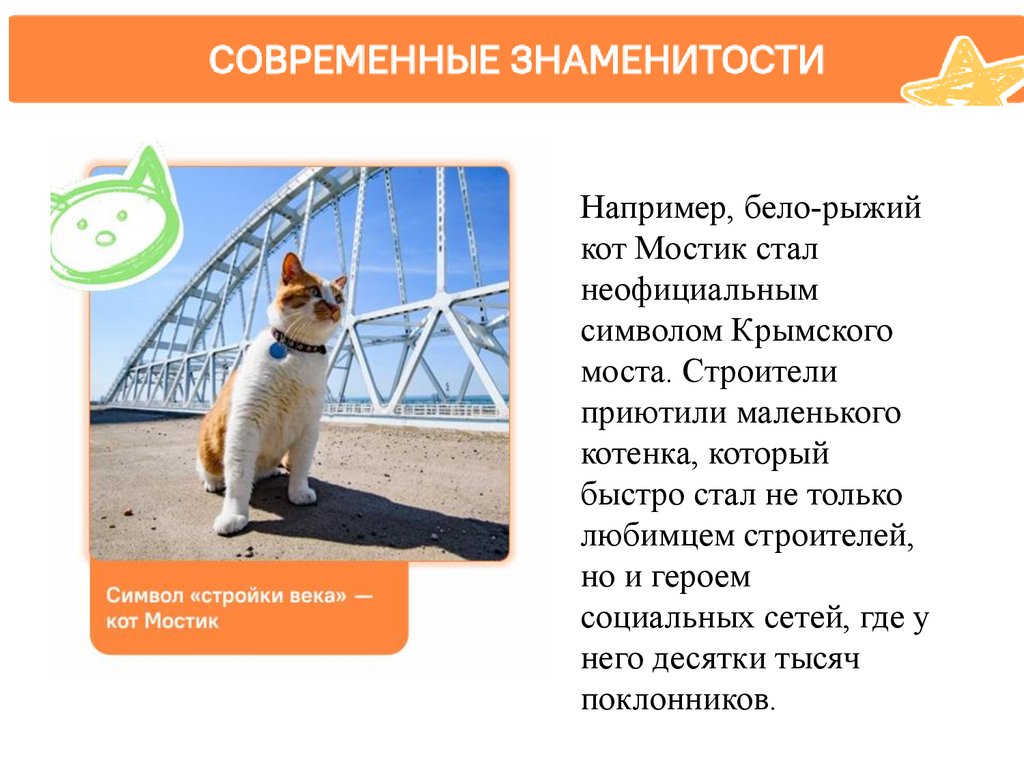 Например, бело-рыжийкот Мостик стал