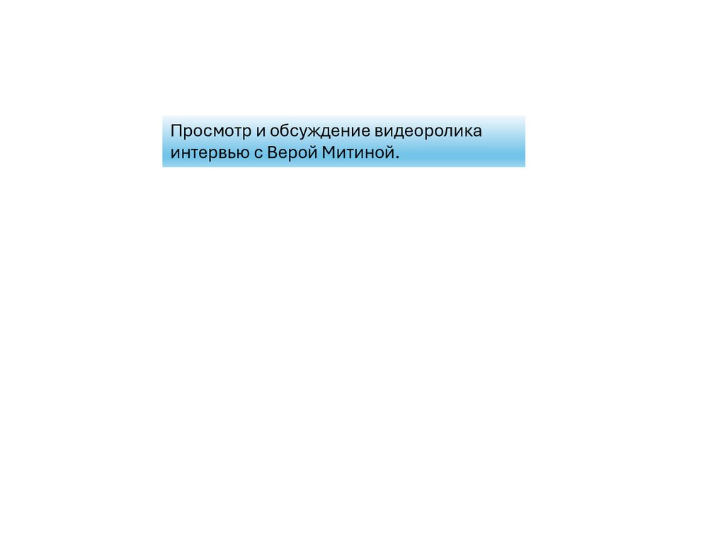 Просмотр и обсуждение видеороликаинтервью с Верой Митиной.