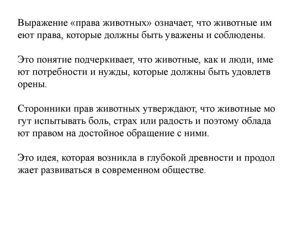 Это понятие подчеркивает, что животные, как и люди, име