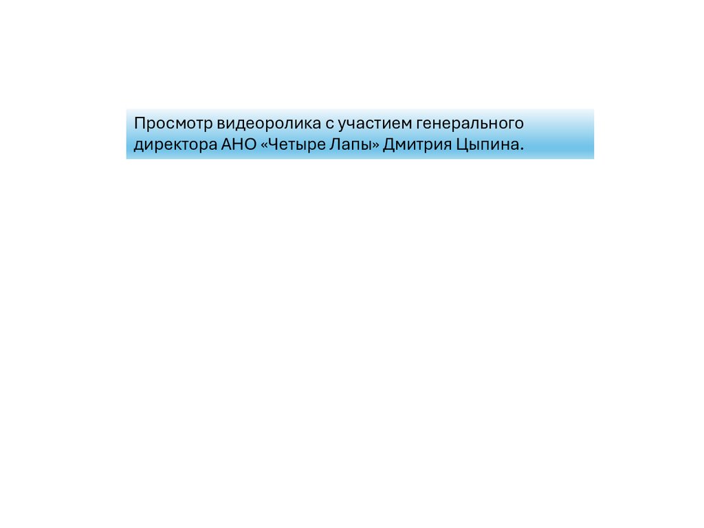 Просмотр видеоролика с участием генеральногодиректора АНО «Четыре Лапы» Дмитрия Цыпина.
