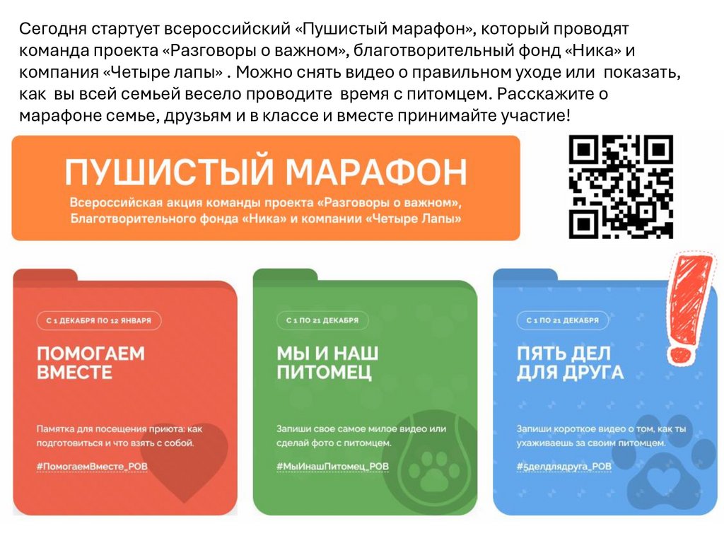 Сегодня стартует всероссийский «Пушистый марафон», который проводяткоманда проекта «Разговоры о важном», благотворительный фонд «Ника» и