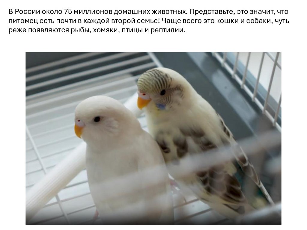 В России около 75 миллионов домашних животных. Представьте, это значит, чтопитомец есть почти в каждой второй семье! Чаще всего это кошки и собаки, чуть