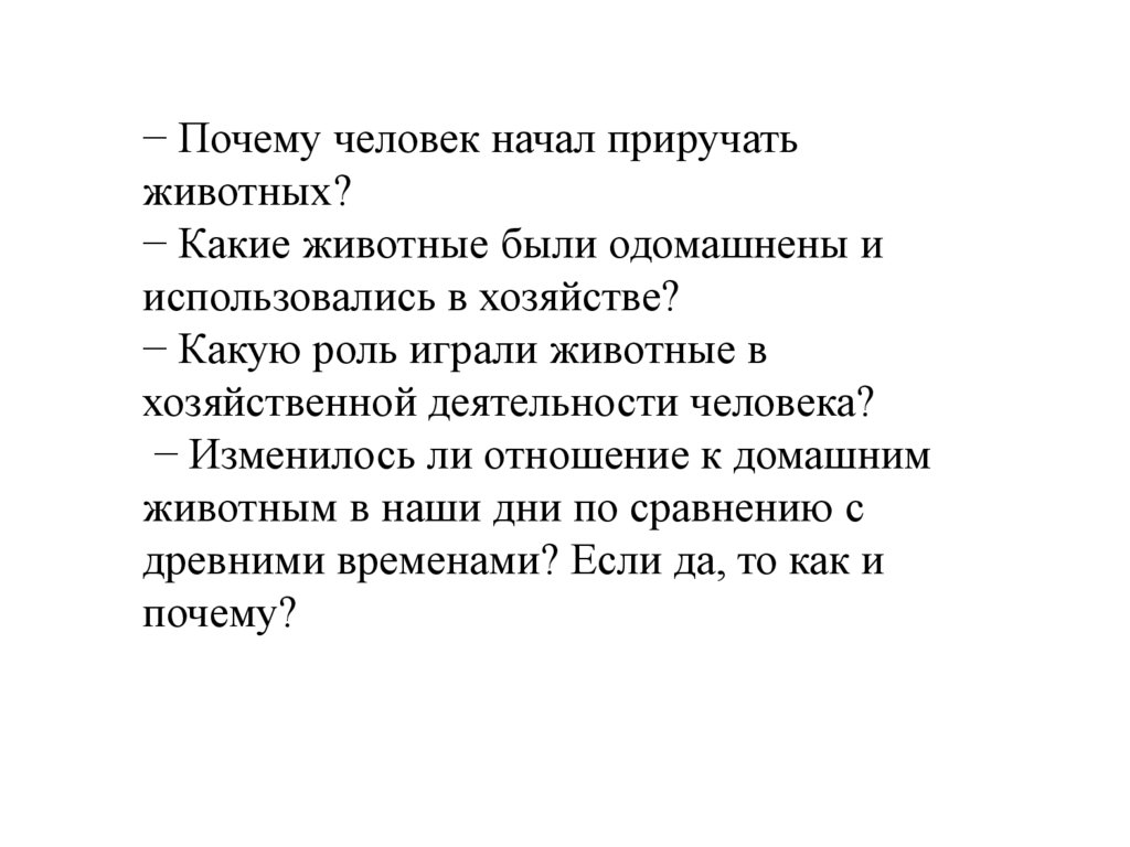 − Почему человек начал приручатьживотных?