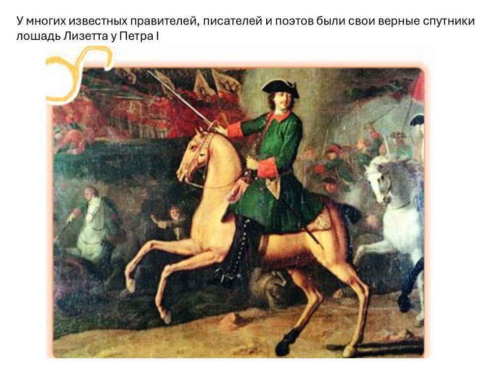 У многих известных правителей, писателей и поэтов были свои верные спутникилошадь Лизетта у Петра I