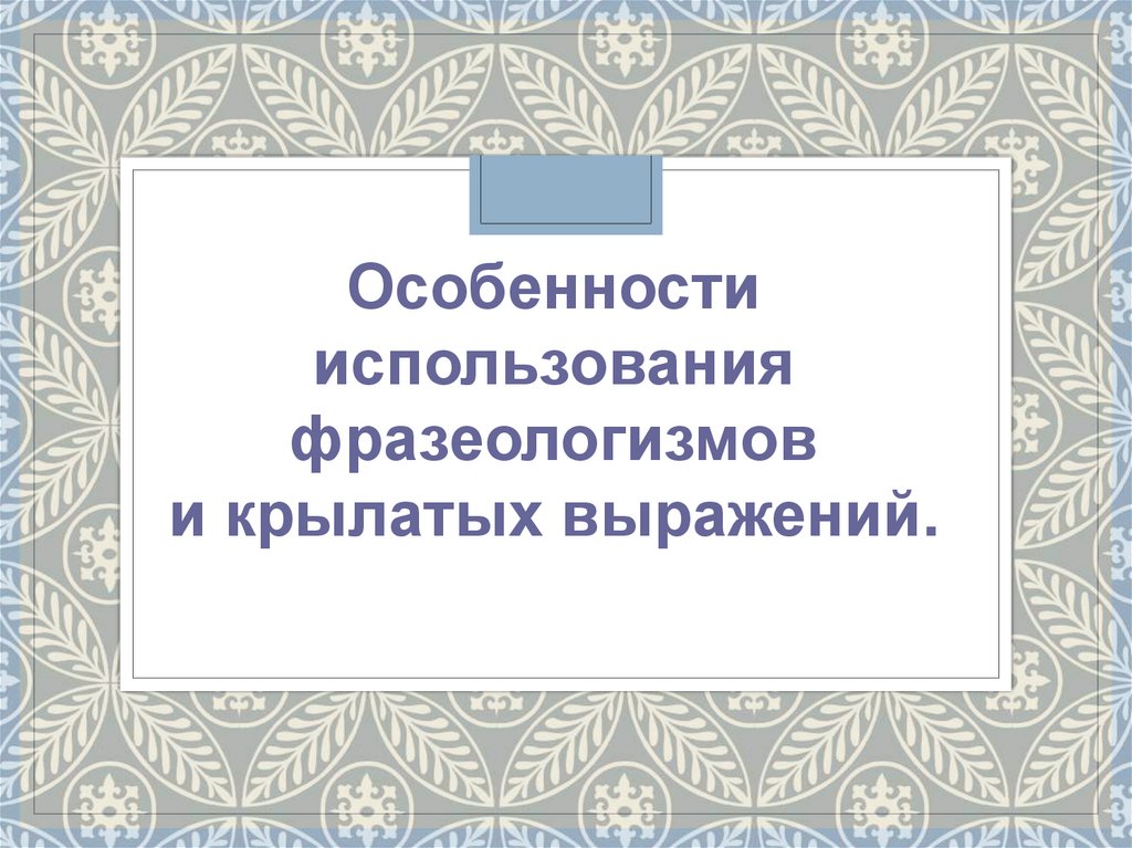 1. Особенности использования фразеологизмов и крылатых выражений.