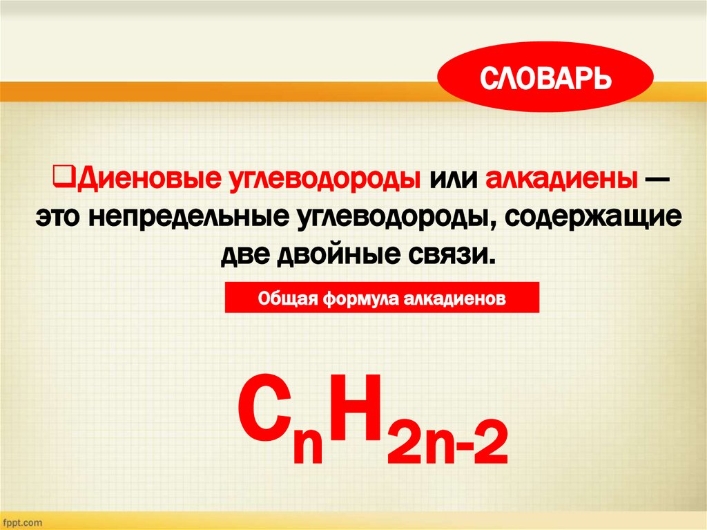 СЛОВАРЬДиеновые углеводороды или алкадиены —