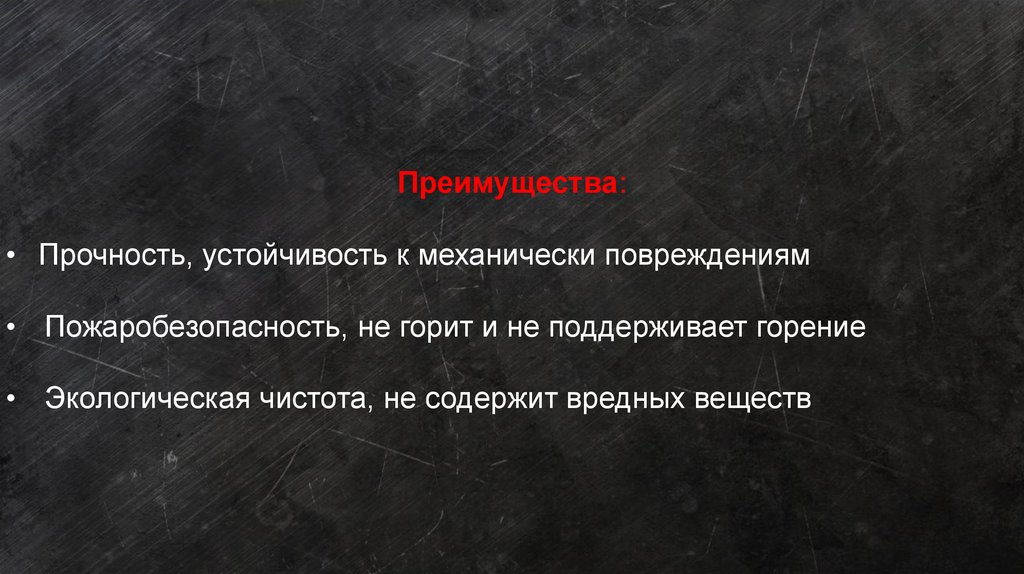 Преимущества:• Прочность, устойчивость к механически повреждениям