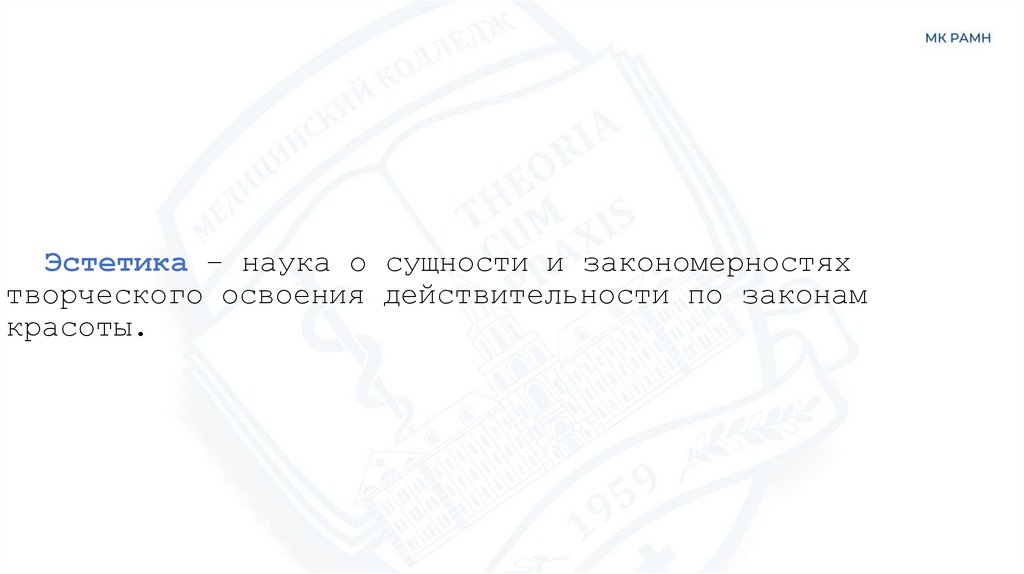 Эстетика – наука о сущности и закономерностяхтворческого освоения действительности по законам