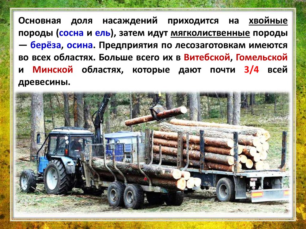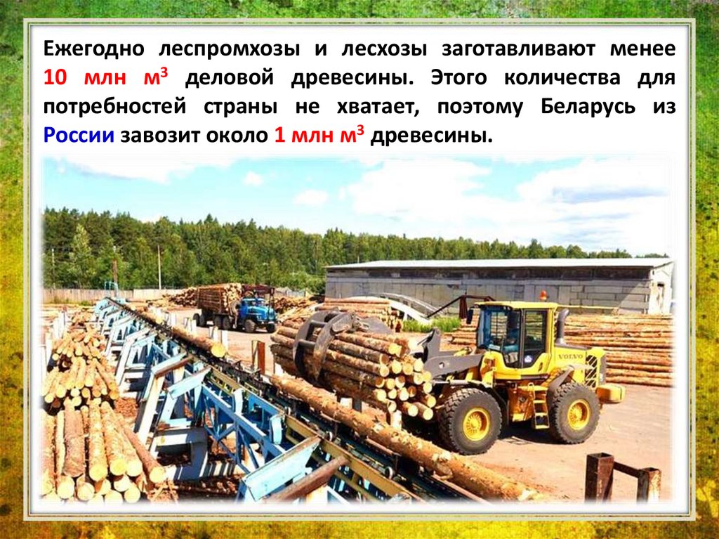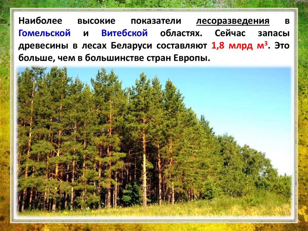 древесины в лесах Беларуси составляют 1,8 млрд м3. Это