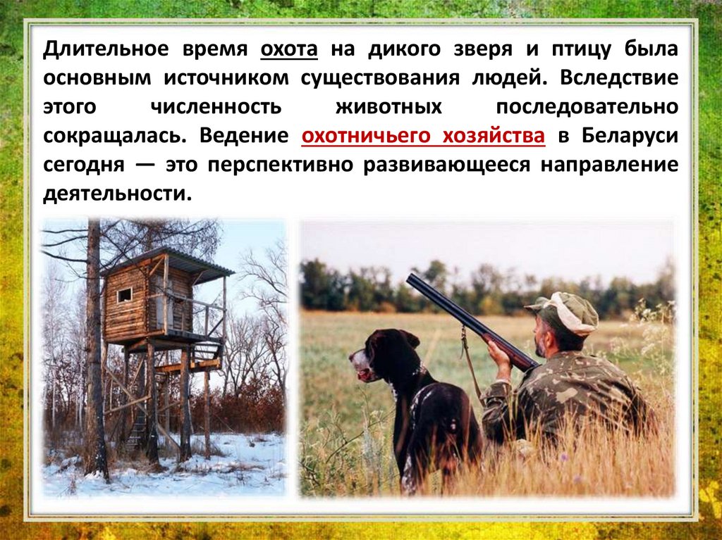 Длительное время охота на дикого зверя и птицу былаосновным источником существования людей. Вследствие
