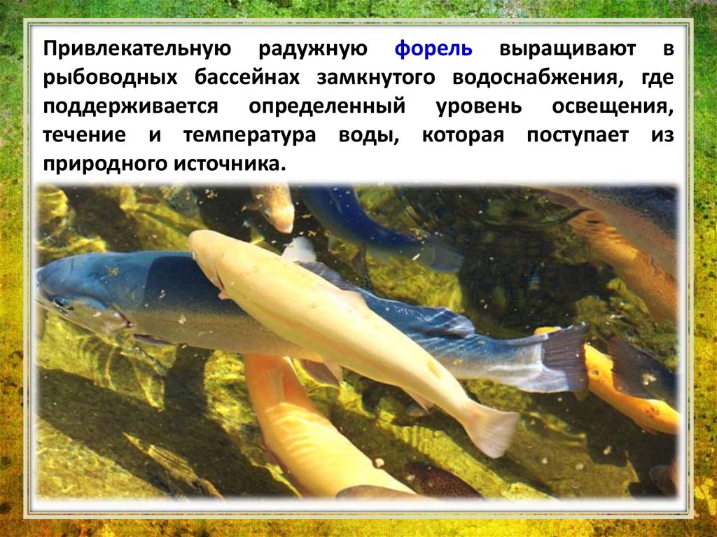 Привлекательную радужную форель выращивают врыбоводных бассейнах замкнутого водоснабжения, где