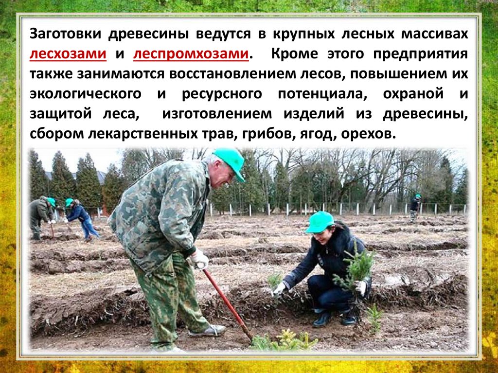защитой леса, изготовлением изделий из древесины,