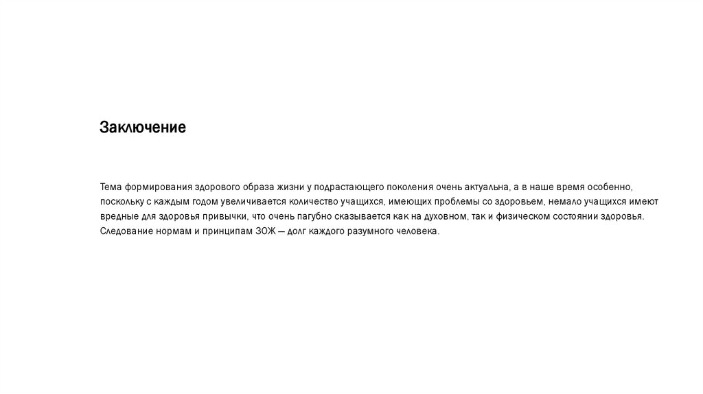 ЗаключениеТема формирования здорового образа жизни у подрастающего поколения очень актуальна, а в наше время особенно,