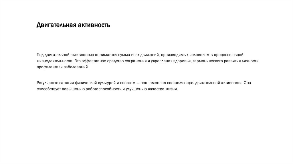 Двигательная активностьПод двигательной активностью понимается сумма всех движений, производимых человеком в процессе своей