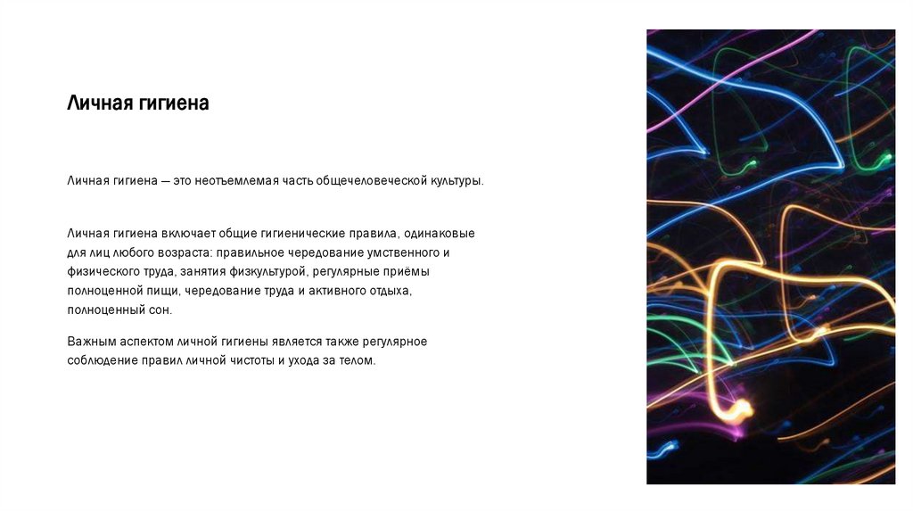 Личная гигиенаЛичная гигиена — это неотъемлемая часть общечеловеческой культуры.