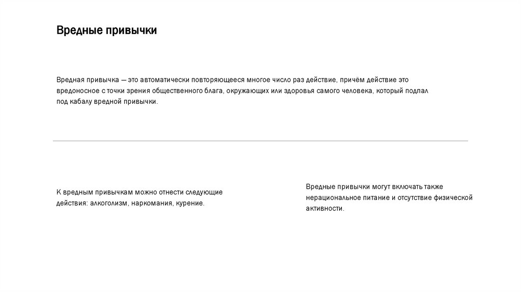 Вредные привычкиВредная привычка — это автоматически повторяющееся многое число раз действие, причём действие это