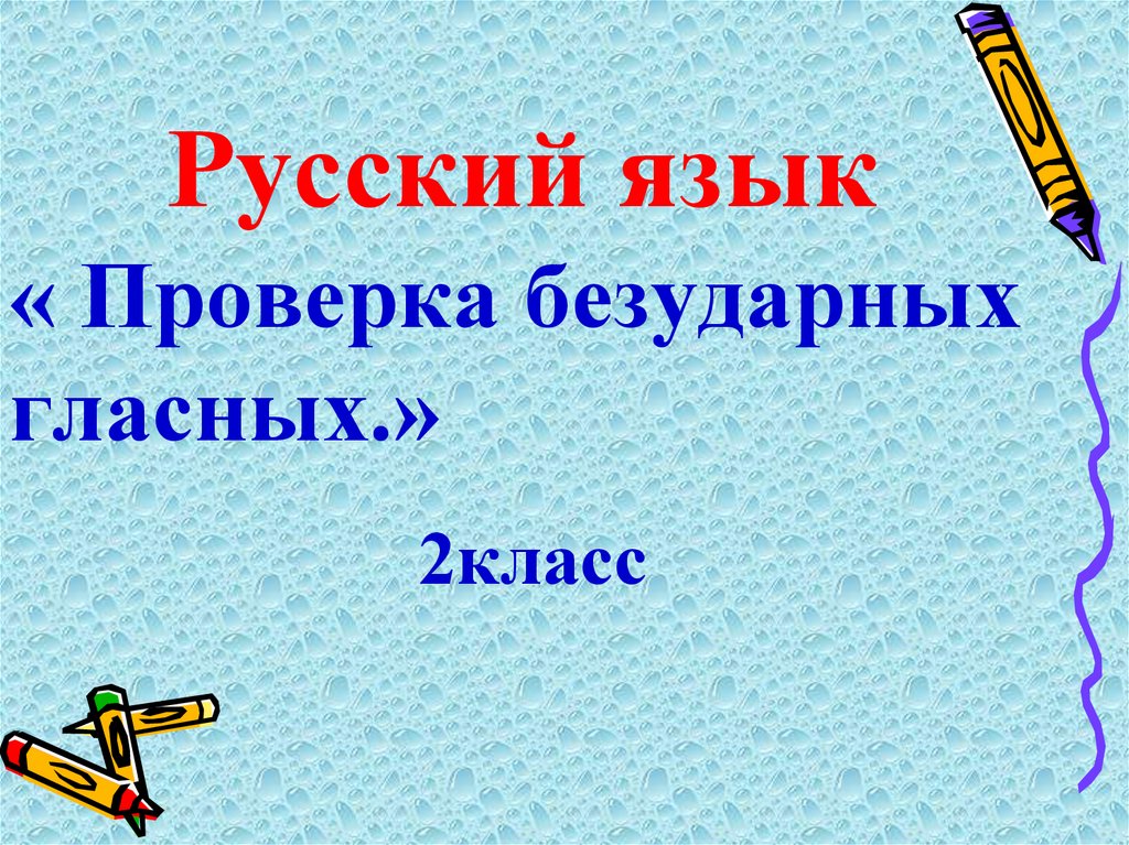 1. Русский язык « Проверка безударных гласных.» 2класс