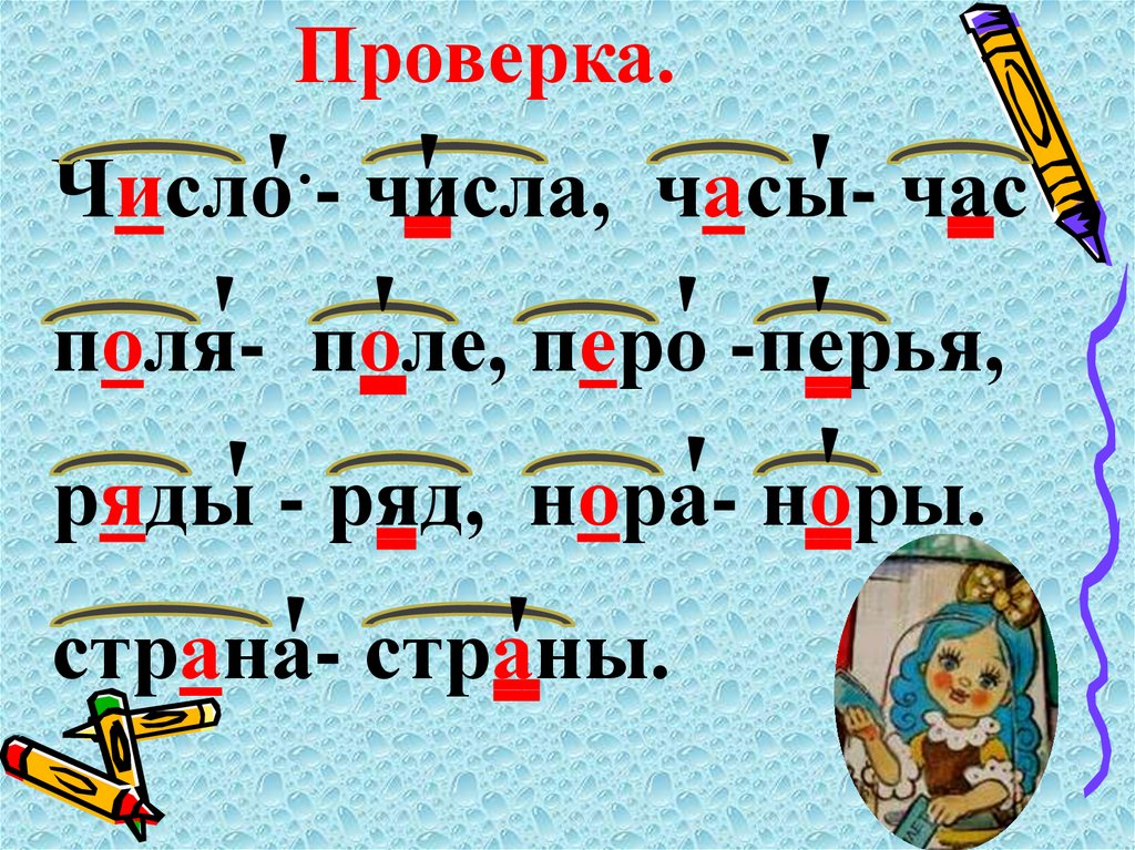 Ч…сло - .…, ч…сы - ……,п…ля - …., п…ро - ….,