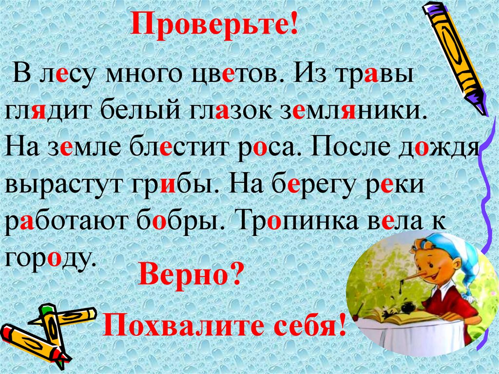 Самопроверка.Весна идёт. По реке плывёт