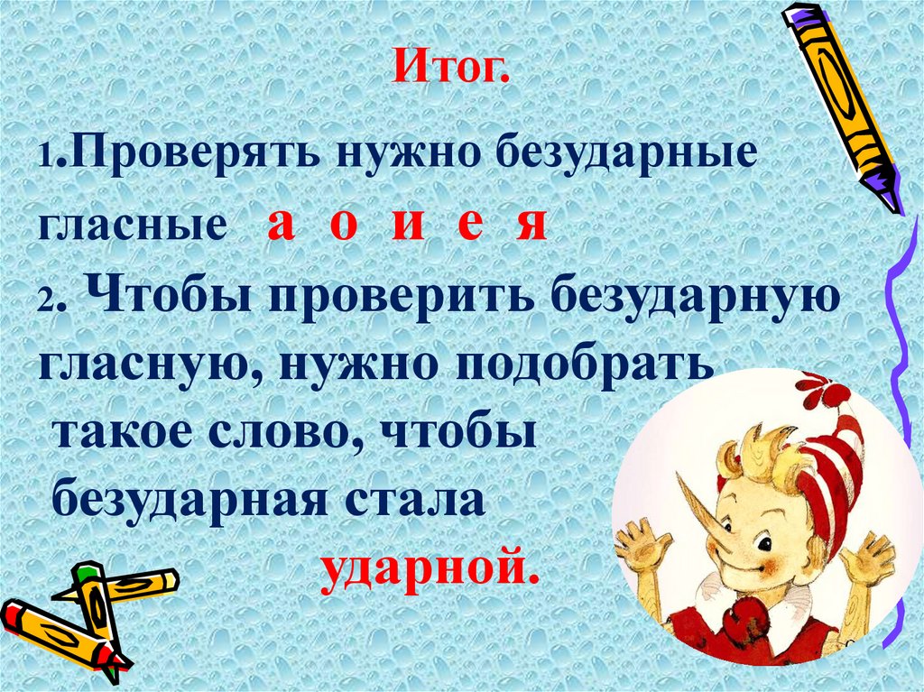 Итог.1.Проверять нужно безударные