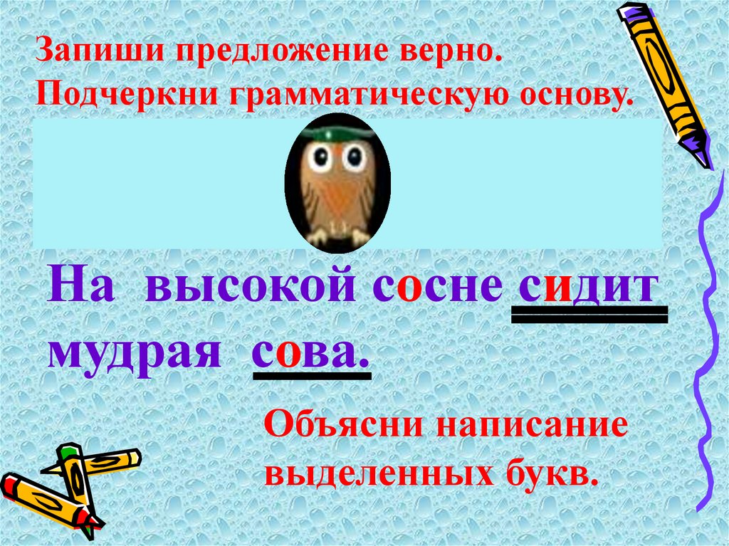 Запиши предложение верно.Подчеркни грамматическую основу.