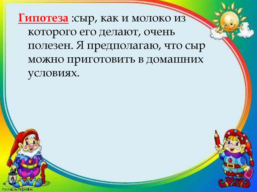 Гипотеза :сыр, как и молоко изкоторого его делают, очень