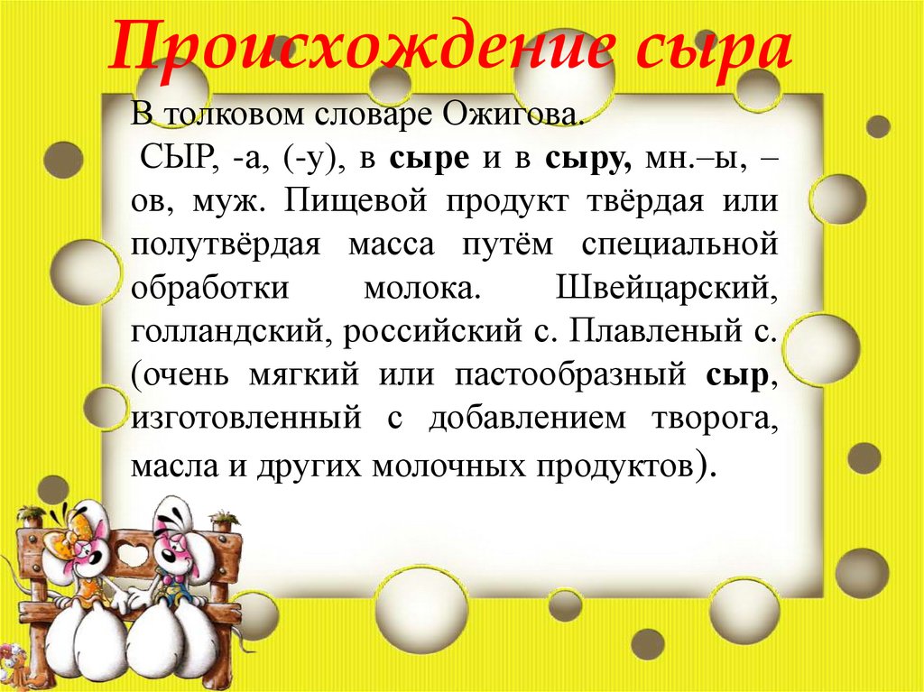 Происхождение сыраВ толковом словаре Ожигова.