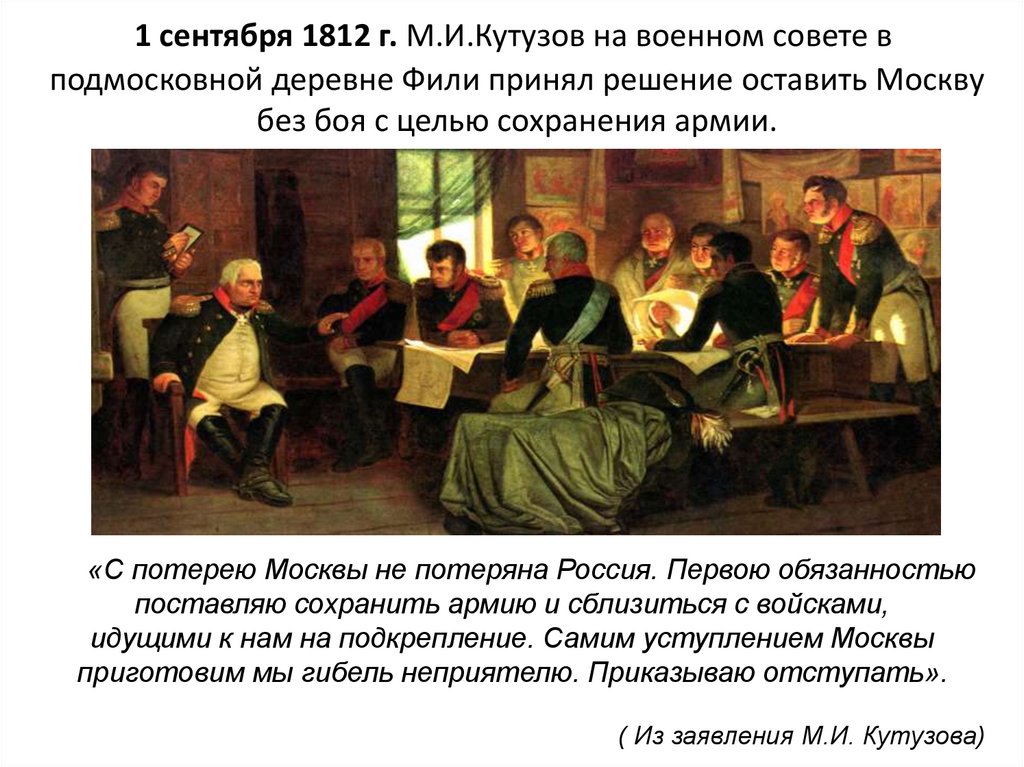рассмотреть ход Отечественной воины1812 года, выделить её итоги