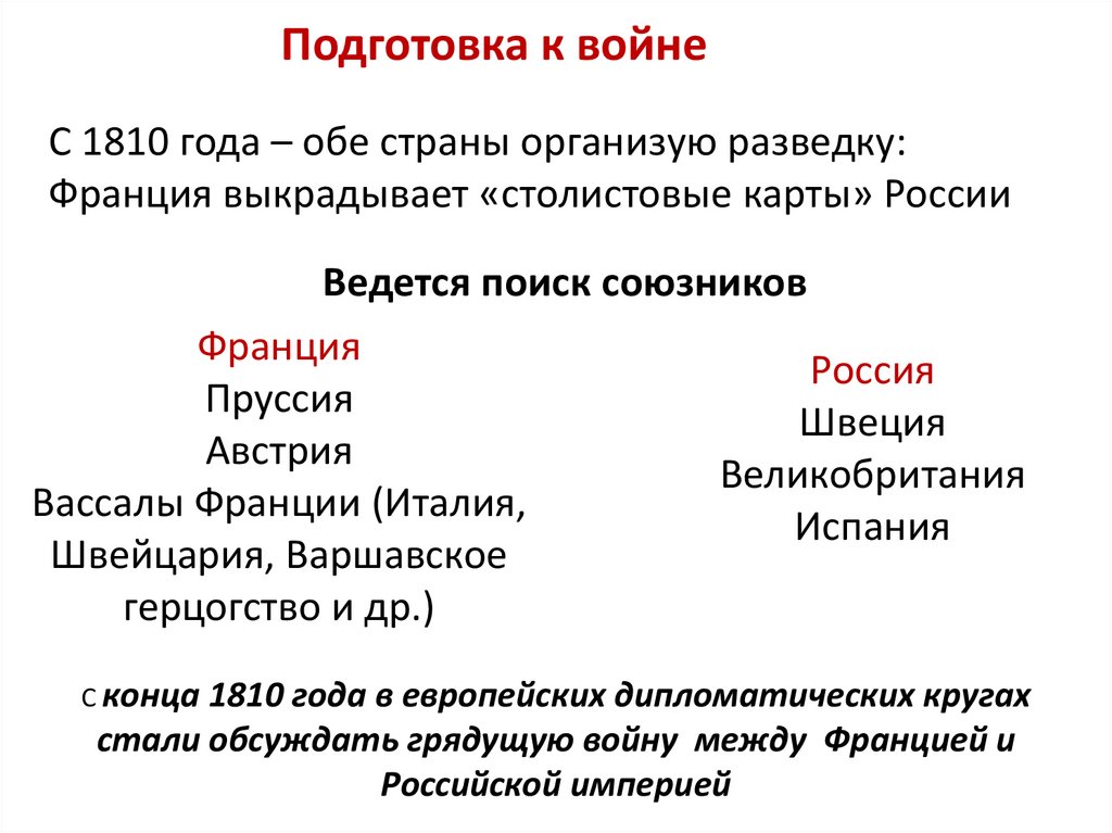 Подготовка к войнеС 1810 года – обе страны организую разведку: