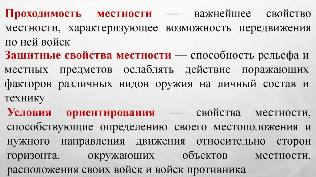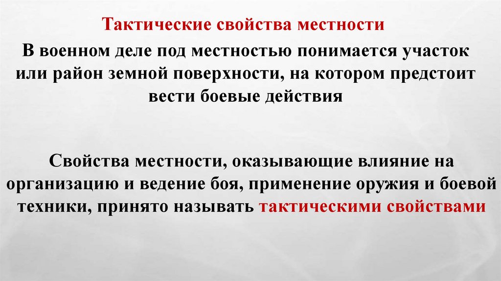 Тактические свойства местностиВ военном деле под местностью понимается участок