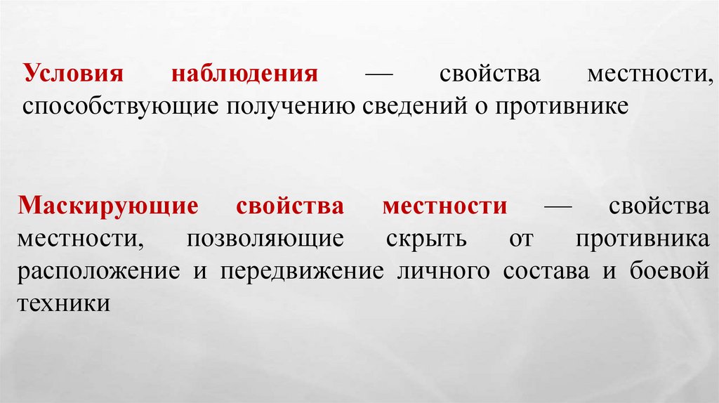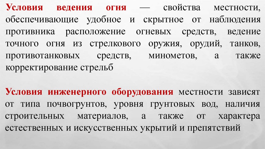Условия ведения огня — свойства местности,обеспечивающие удобное и скрытное от наблюдения