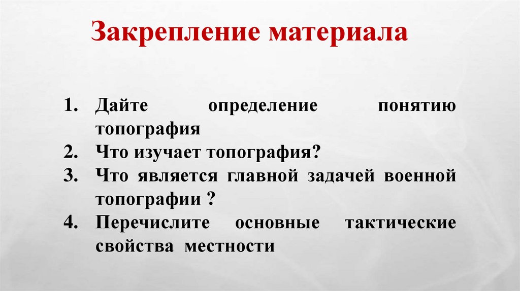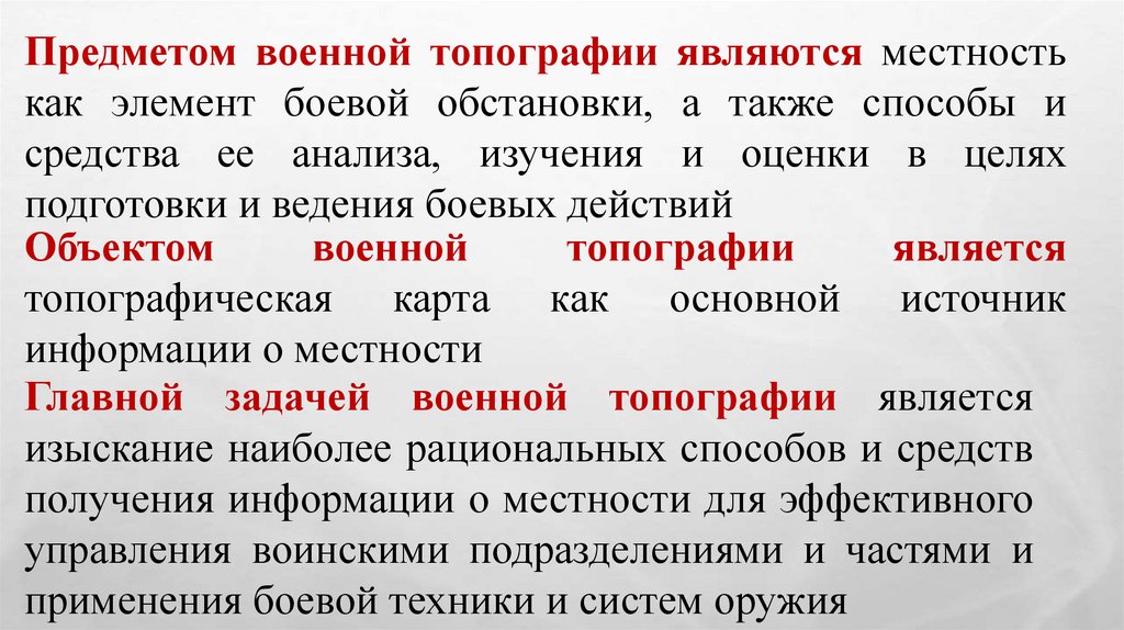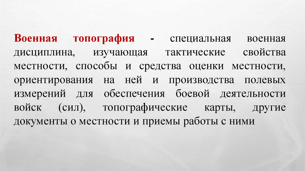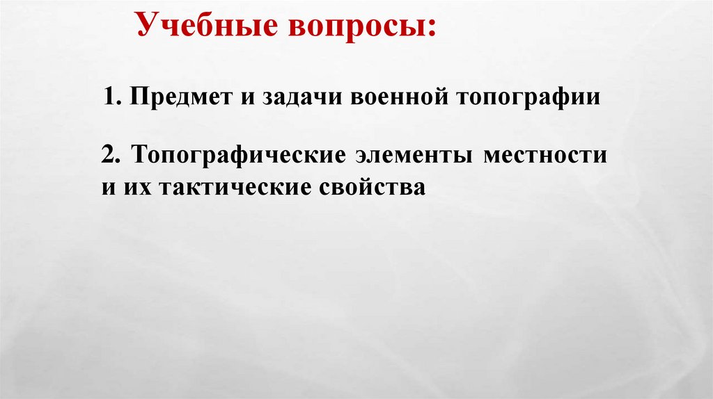 Учебные вопросы:1. Предмет и задачи военной топографии