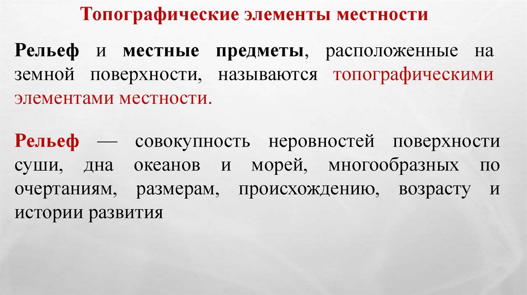 Топографические элементы местностиРельеф и местные предметы, расположенные на