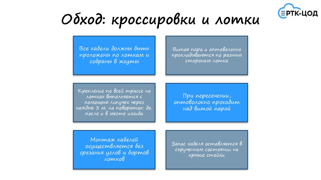 Обход: кроссировки и лоткиВсе кабели должны быть