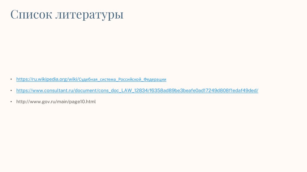 Список литературы• https://ru.wikipedia.org/wiki/Судебная_система_Российской_Федерации