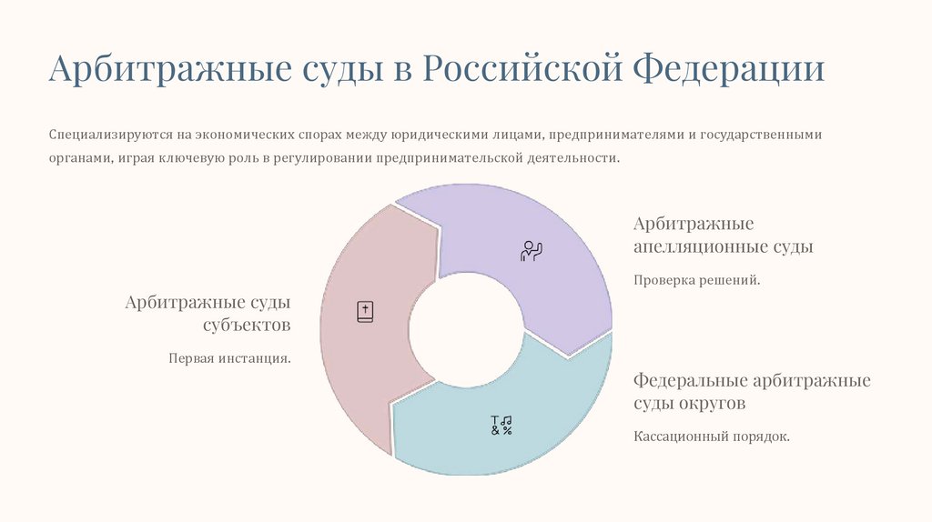 Арбитражные суды в Российской ФедерацииСпециализируются на экономических спорах между юридическими лицами, предпринимателями и государственными