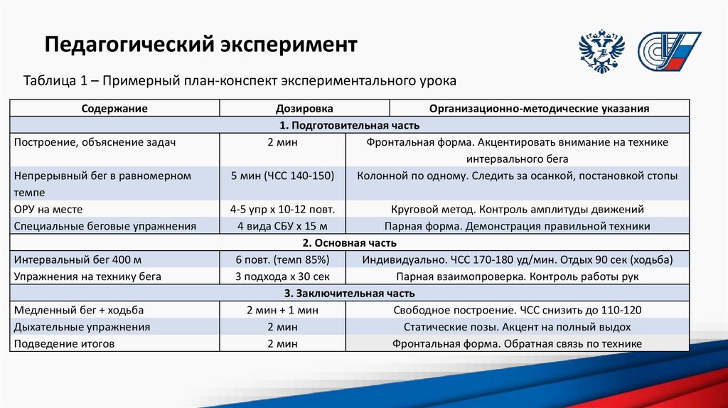 Педагогический экспериментТаблица 1 – Примерный план-конспект экспериментального урока