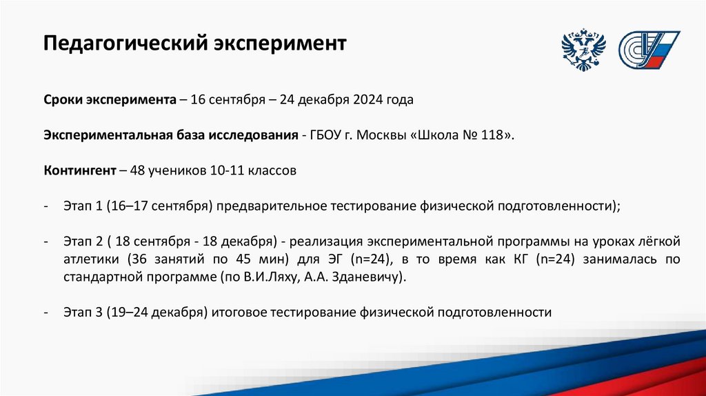 Педагогический экспериментСроки эксперимента – 16 сентября – 24 декабря 2024 года