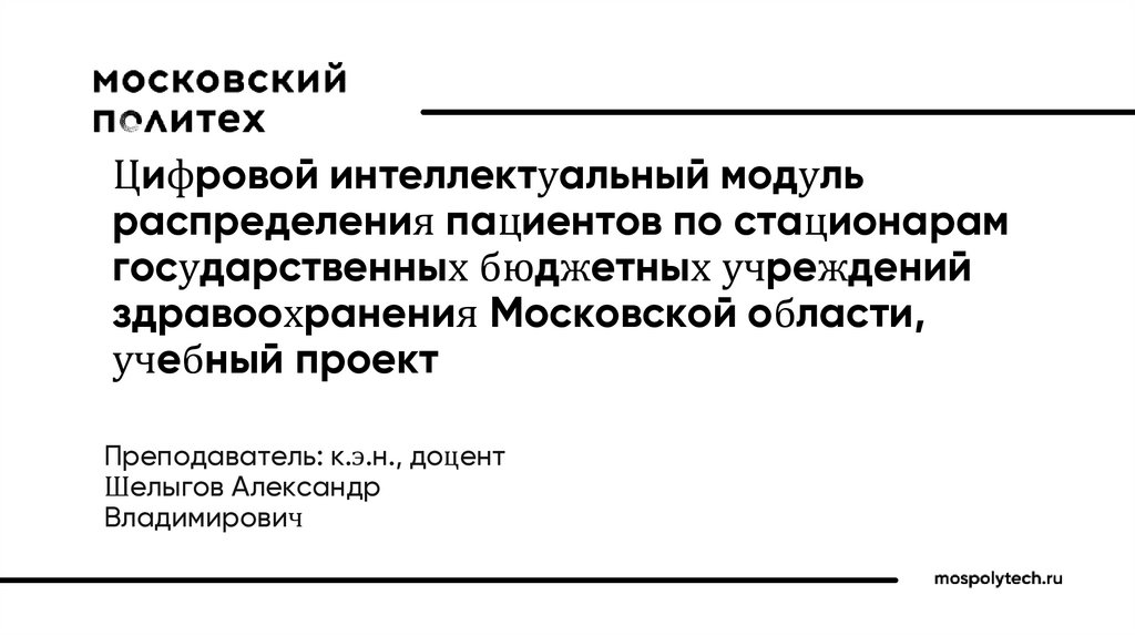 1. Цифровой интеллектуальный модуль распределения пациентов по стационарам государственных бюджетных учреждений здравоохранения